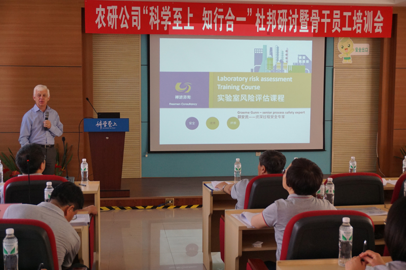 The meeting officially opened on September 3. Director Yu Haibo, as the guider, shared safety information, and external expert Graeme Gunn provided trainings on laboratory risk assessment. In addition, Graeme Gunn emphatically introduced the application of two risk analysis tools LEC method and HELPER method. Each sub-committee practiced to utilize LEC method and HELPER method in the morning of September 4. Fan Shibiao, Deputy General Manager of Shenyang Sciencreat Chemical Co., Ltd, shared improvement cases of DuPont safety management in the afternoon of the same day. On September 5, each sub-committee continued to discuss and report how to perform relevant work in groups. Finally, Sun Ke gave a comprehensive summary on this training meeting.